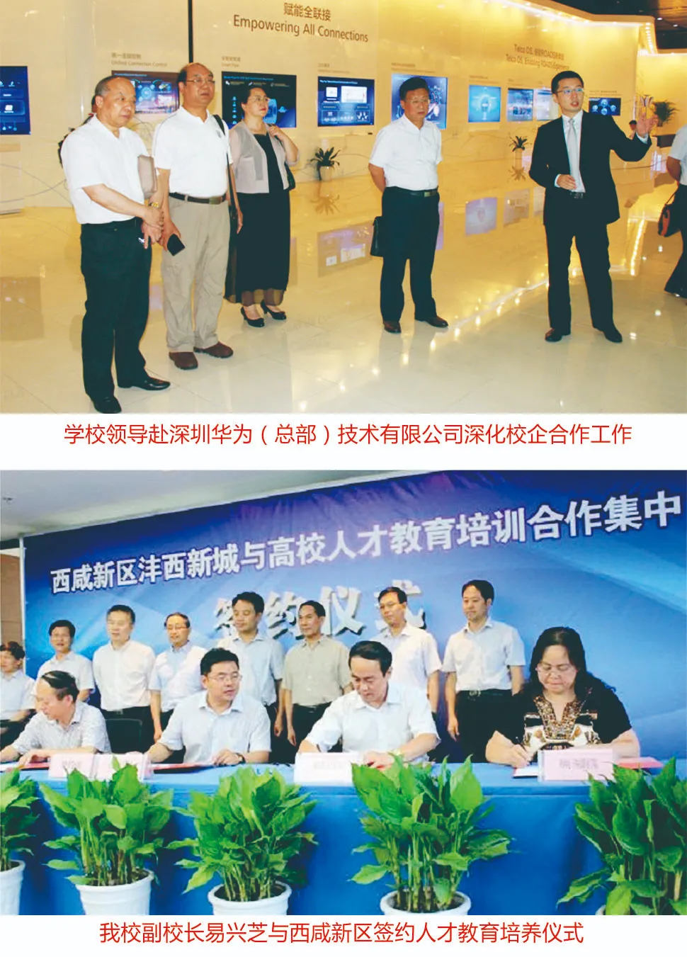 学校与全国逾500家优秀企业良好合作,华为技术有限公司、中兴通讯股份有限公司、大唐电信集团、北京知链科技有限公司、杭州朗讯科技有限公司、力成半导体(西安)有限公司、三星(中国)半导体有限公司、西安华天科技有限公司、中软国际、西安地铁等139家知名企业与学校建立了长期稳定的校企合作关系,为企业开展“卓越工程师”订单班人才培养。